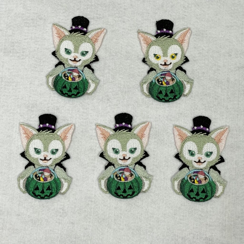 私としては、ワッペンにしてアイロン接着した方が、きれいに配置できるのですが、